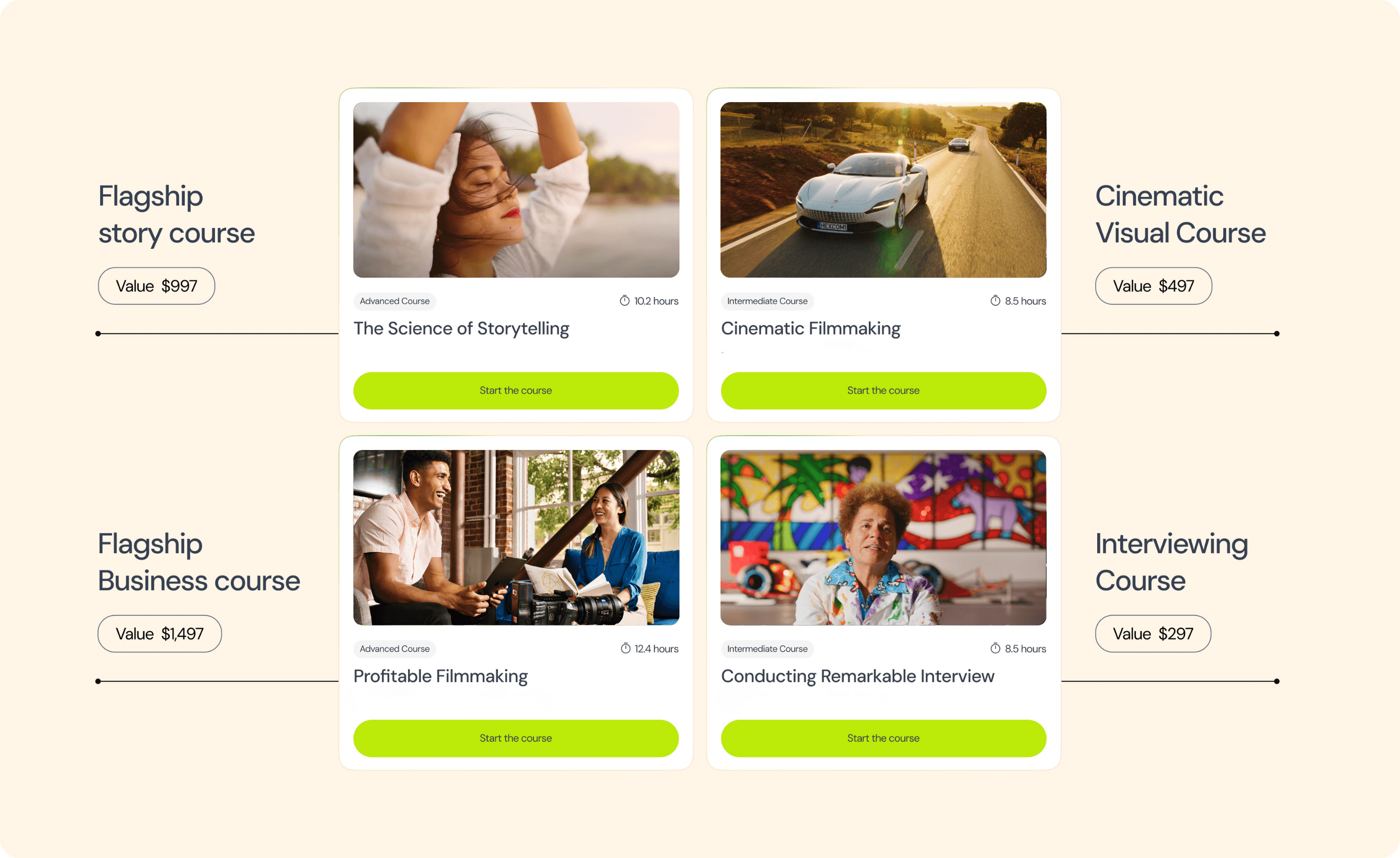 All of Muse Storytelling Flagship courses, taught to over 10,000 filmmakers, available at your fingertips. A value of over $3,000 USD.